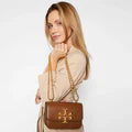 Signature hardware, scaled-up in sculptural brass. The small Eleanor Bag is a structured shape in soft Italian leather — with edges that are painted by hand, to emphasize the clean lines. Its twisted rope chain is convertible: wear it doubled or long and crossbody.