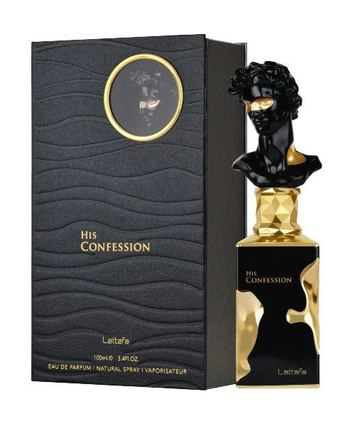 His Confession By Lattafa, launched in 2024. Lattafa His Confession Eau De Parfum Spray for Men is a bold and captivating fragrance that embodies modern masculinity. It opens with a refreshing and spicy blend of mandarin, cinnamon, and lavender, creating an invigorating introduction that immediately commands attention. As the fragrance develops, it reveals a rich heart of iris, cypress, and benzoin, adding depth and sophistication. The composition is grounded by a warm and sensual base of vanilla, tonka beans, patchouli, cedarwood, incense, and amber, leaving a lasting and memorable impression. His Confession combines freshness with warmth, making it versatile for any occasion.