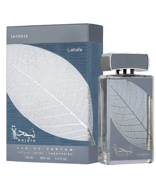 Najdia Intense By Lattafa, launched in 2024. Top notes are Pineapple, Mint, Apple and Ginger, middle notes are Marine notes, Lavender and Geranium, base notes are Patchouli, Sandalwood, Tonka Bean and Musk.