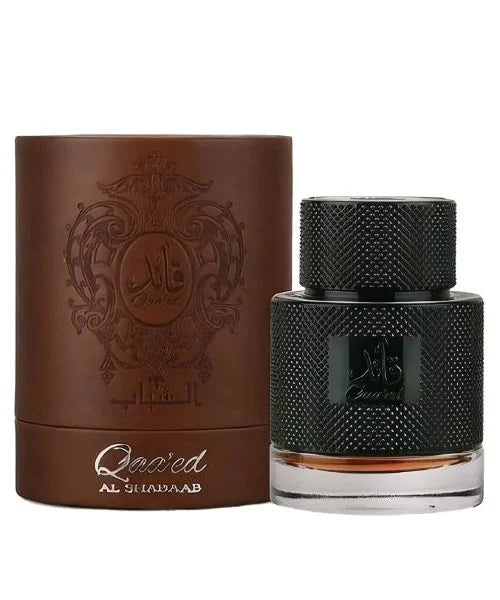 Qaaed Al Shabaab By Lattafa, launched in 2021. Top notes are Osmanthus and Ylang-Ylang; middle notes are Leather and Cedar; base notes are Agarwood (Oud) and Light Amber.