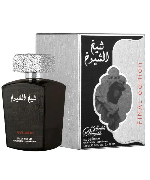 Sheikh Shuyukh Final Edition By Lattafa, Launched in 2022. Top notes are Lemongrass, Lemon, Sage and Lavender; middle notes are Cardamom, Rose, Leather, Mimosa and Rosemary; base notes are Musk, Cedar, Amber, Vanilla and Oakmoss.