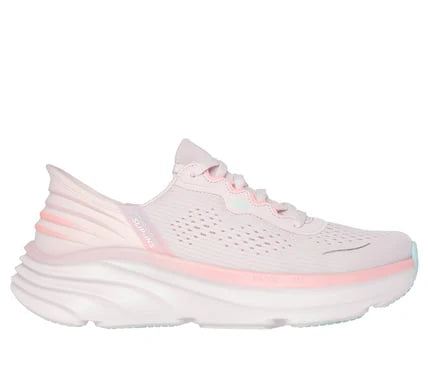 Get the latest in well-cushioned sporty comfort wearing Skechers Hands Free Slip-ins® Relaxed Fit®: D'Lux Vapor. Designed with our exclusive Heel Pillow™, this roomy vegan lace-up features a breathable engineered mesh upper with a lightweight Vapor Foam™ midsole and a Skechers Air-Cooled Memory Foam® insole.
