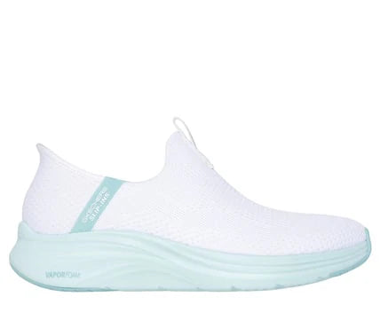 Discover ultimate comfort and lightweight style with the Skechers Vapor Foam™ - Sunset Splash. This laceless model features a technical Stretch Fit® knit upper with a Skechers Air-Cooled Memory Foam® insole for optimal comfort, plus a super-lightweight Vapor Foam™ midsole.